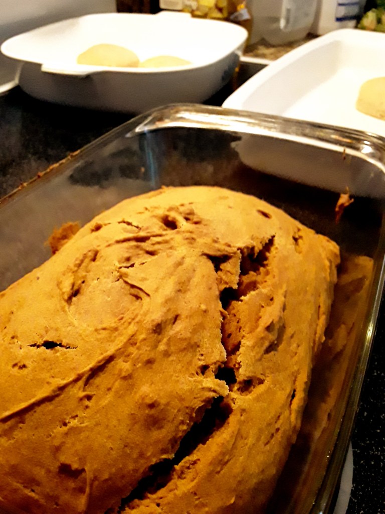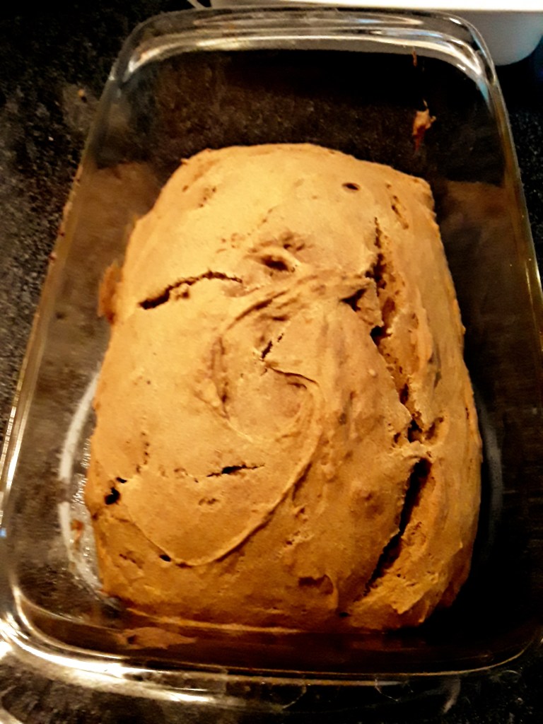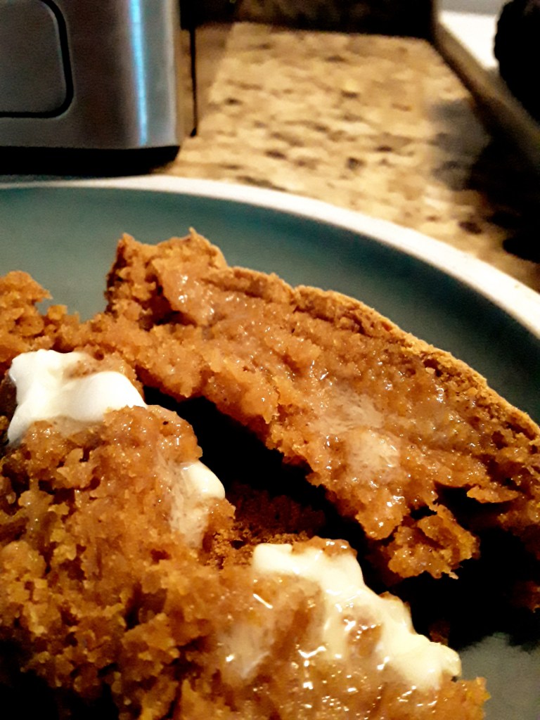 Pumpkin,and pumpkin pie spice in a warm delicious bread! I love pumpkin bread even if it’s not fall I will still eat it right up!