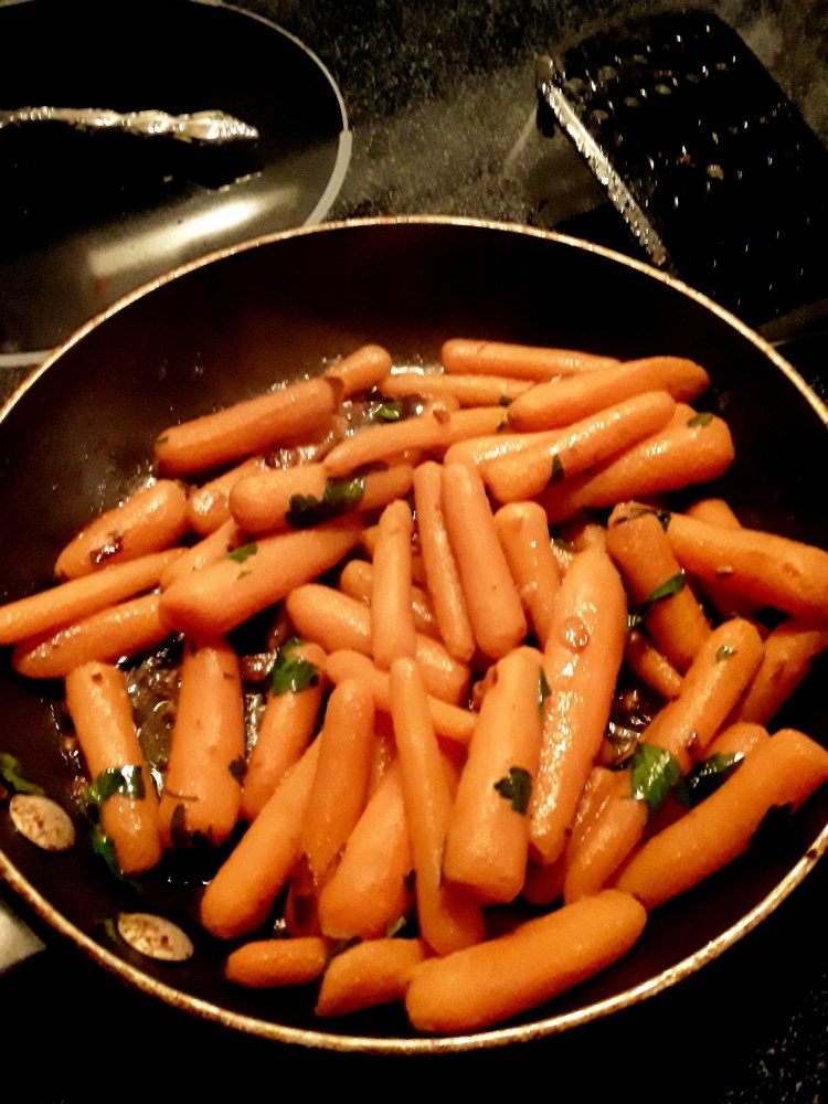 Baby carrots,shallots,and parsley. For a little more flavor I added mustard and honey! Simple,easy,delicious!