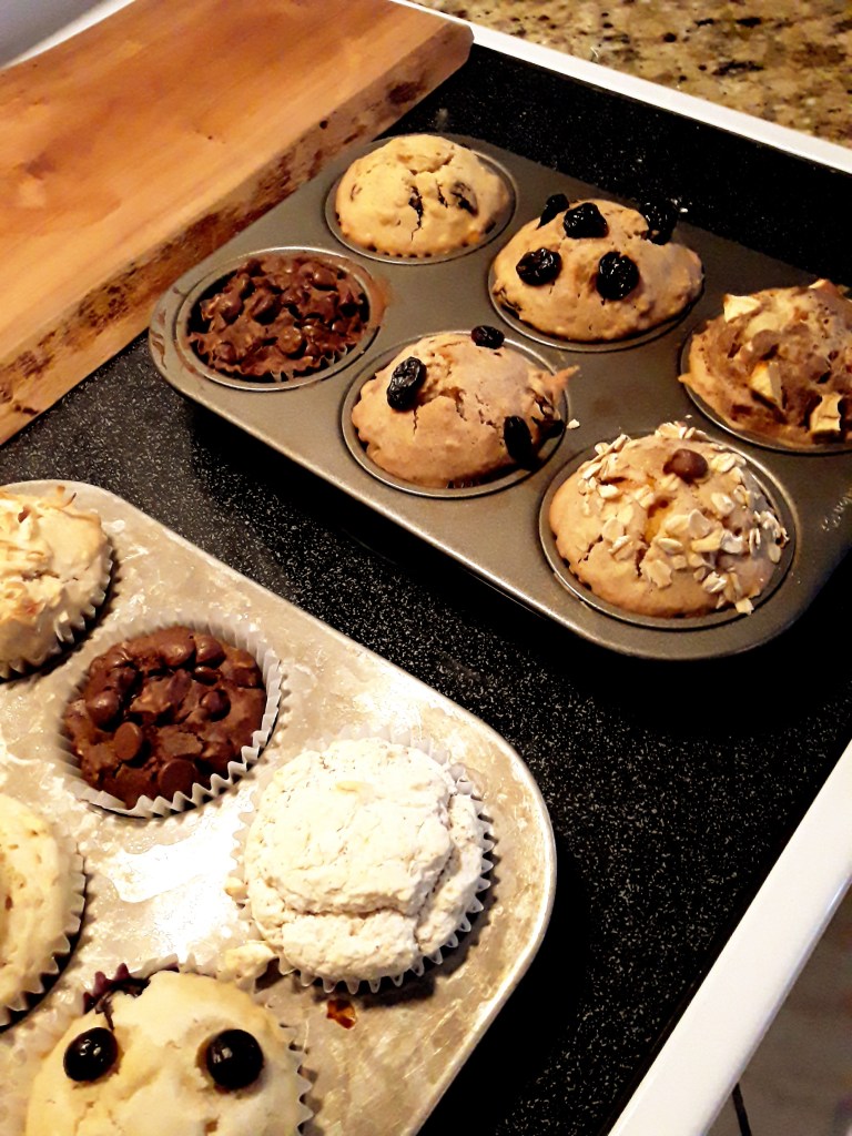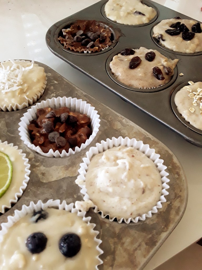 Eggless,dairy free,low sugar,simple,quick,and super delicious! Muffins are a favorite of mine and when everyone wants a different flavor…let them build their own!