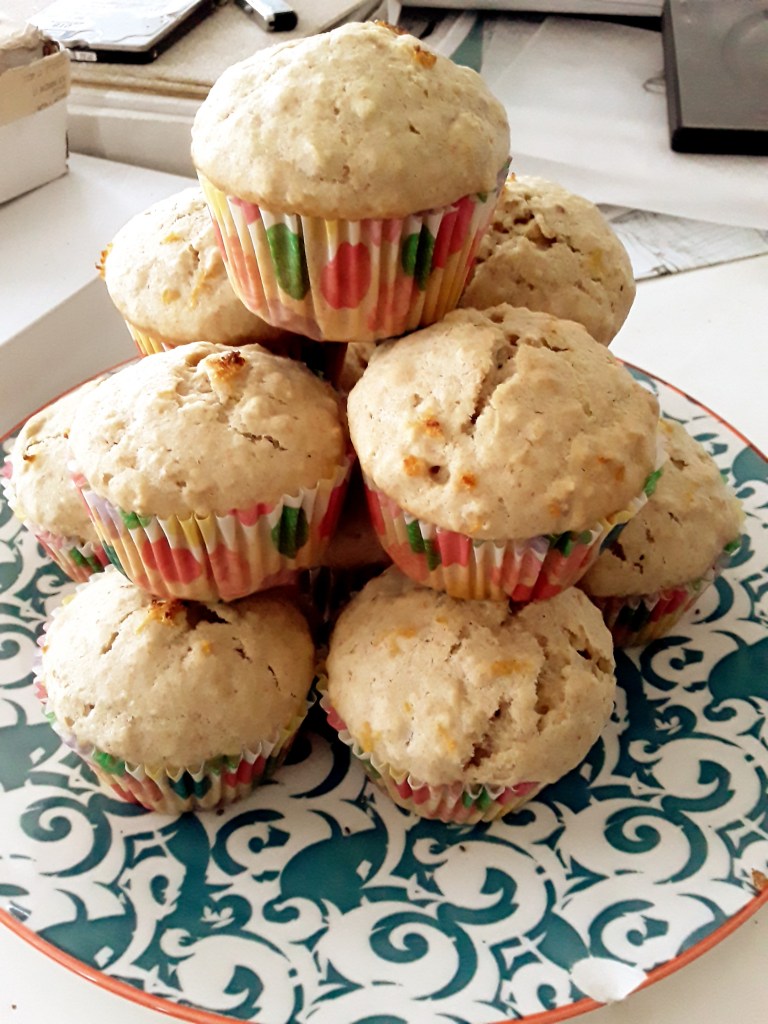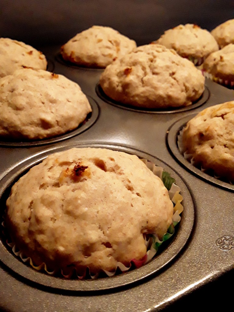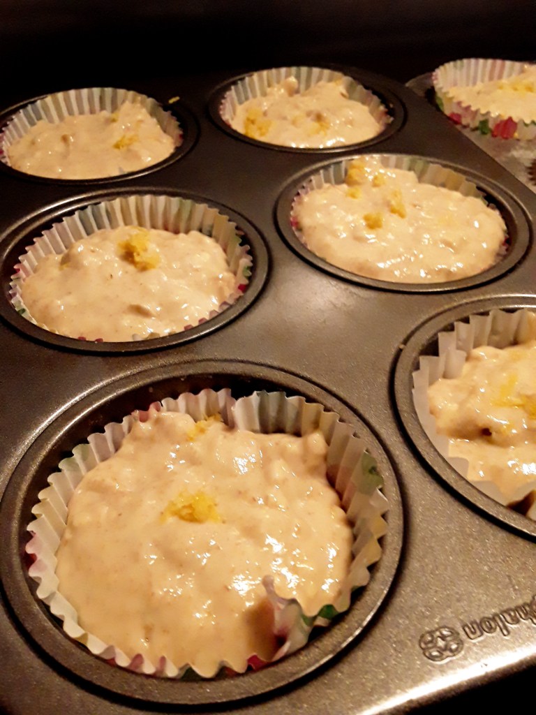Divide evenly between 12 lined muffins holes.