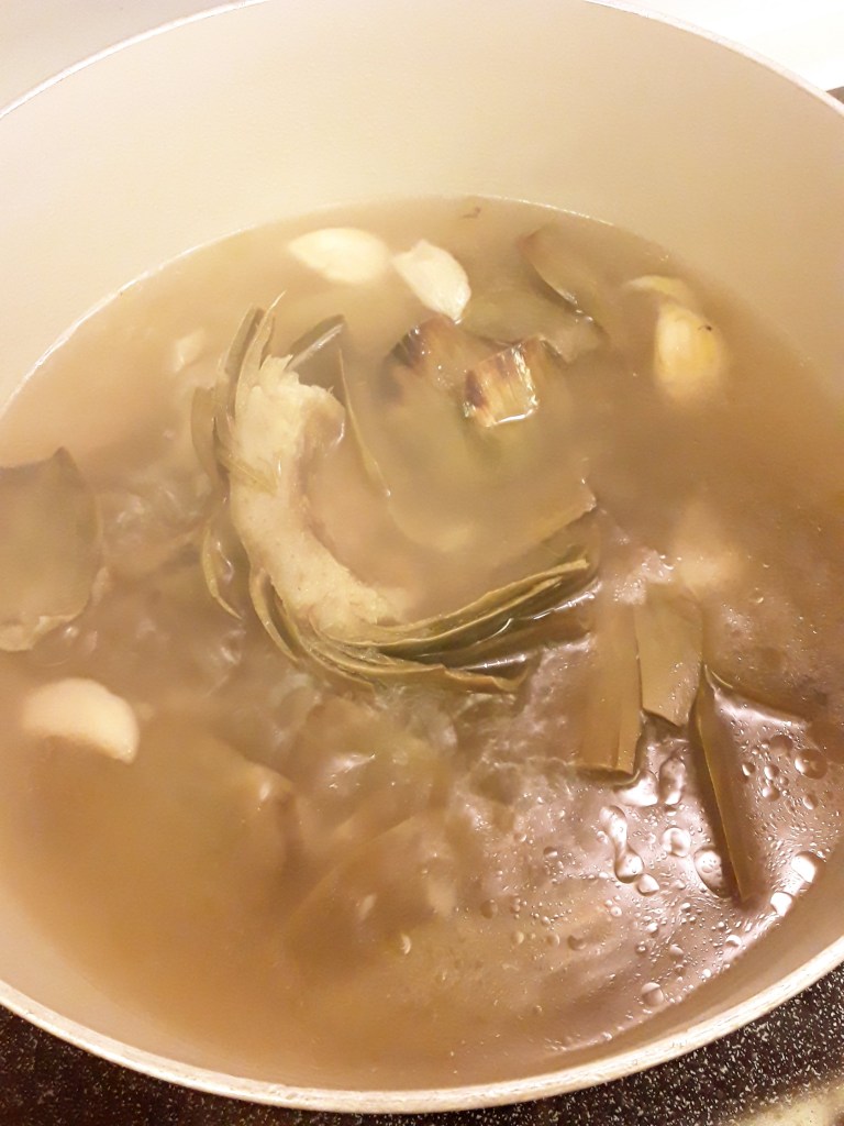 in a blender blend the parsnips,broth,garlic,onion,artichoke hearts,and sea salt.