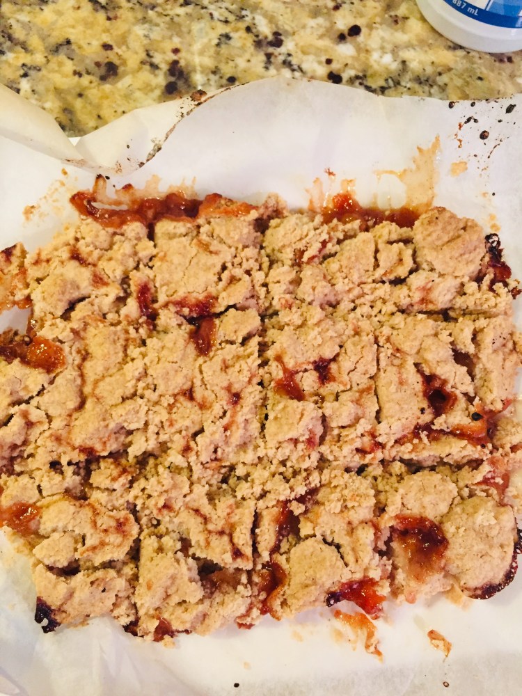 pour the apricot filling on top and even it out.