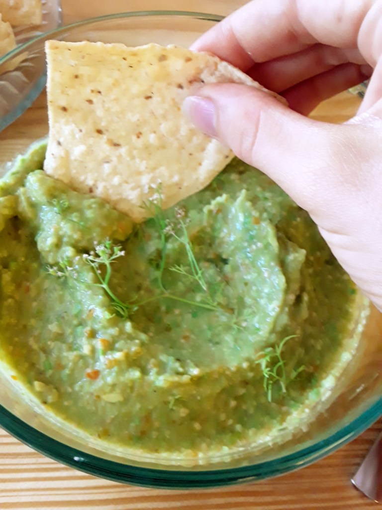Unlike common salsa verde his recipe uses sweet peppers and avocado for a smoother more delicious flavor!