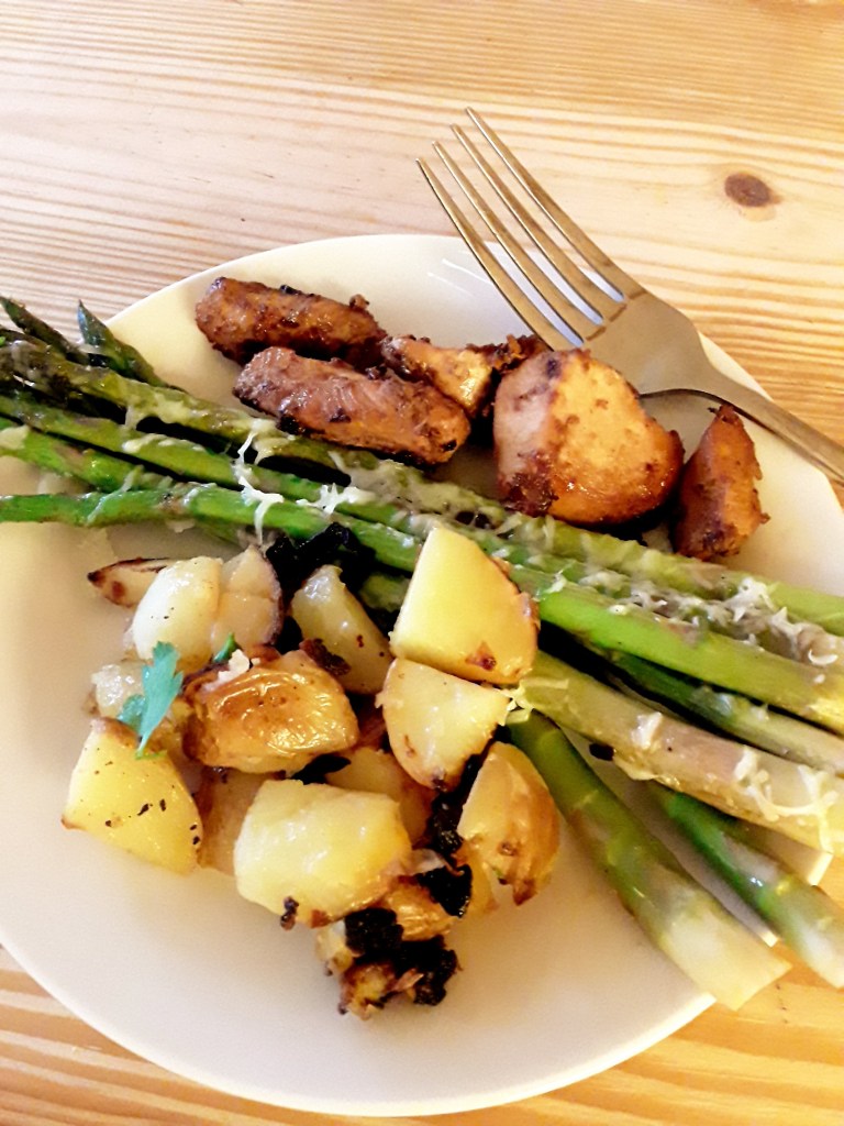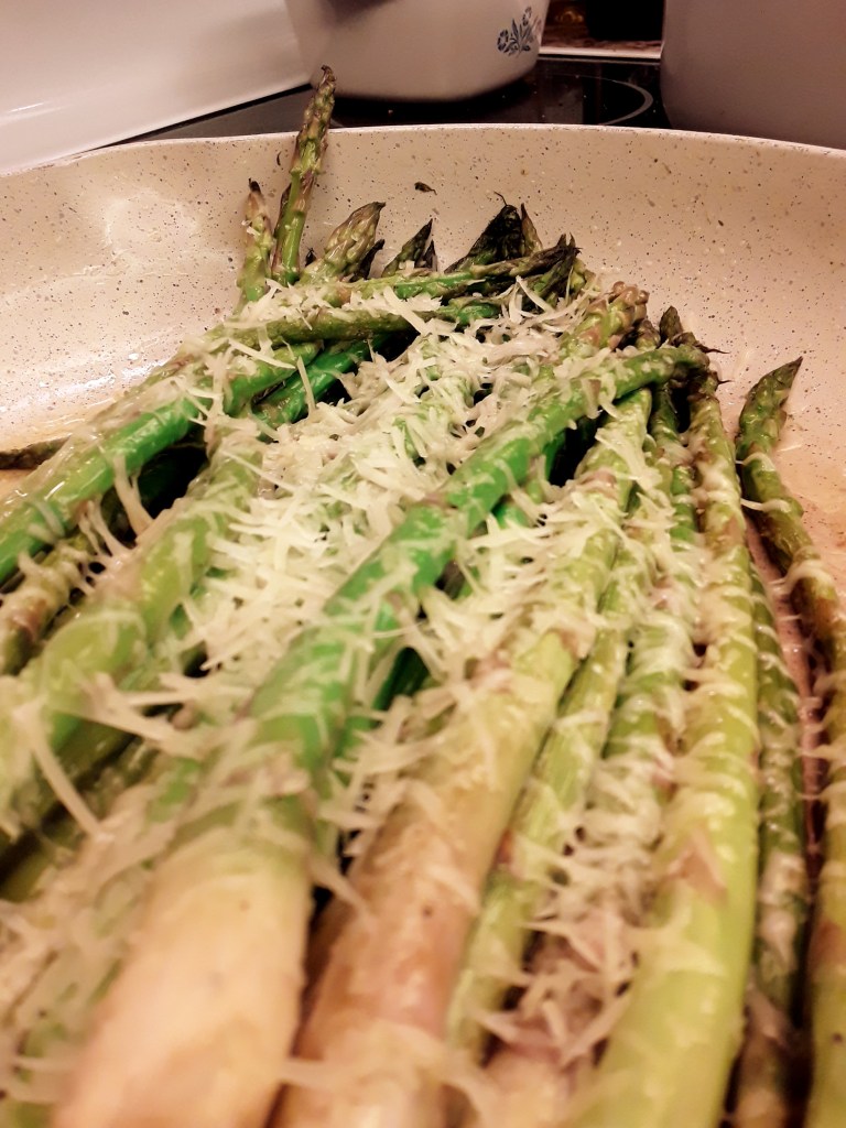 This is the second time I’m using asparagus so far and both my recipes have turned out great! To me asparagus tastes very similar to green beans and tastes good in most green bean recipes as well. However made my first batch of asparagus with lemon, garlic, and butter. This recipe was better then my first one and why wouldn’t it be when you add parmesan cheese to it?!