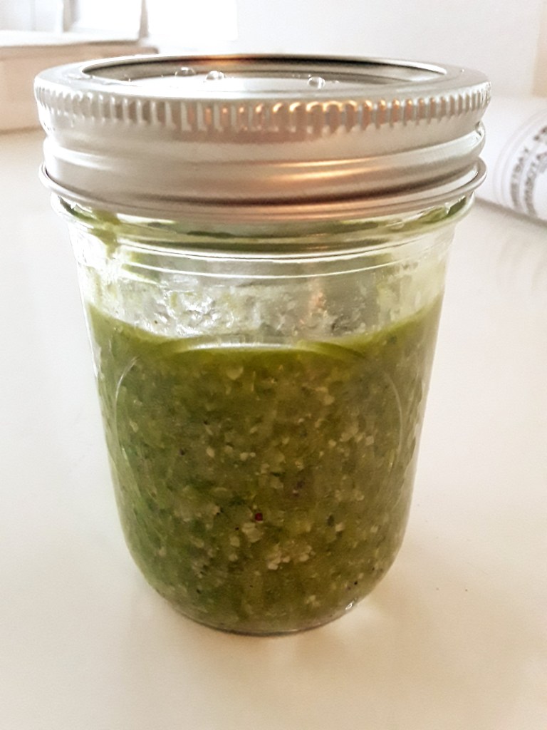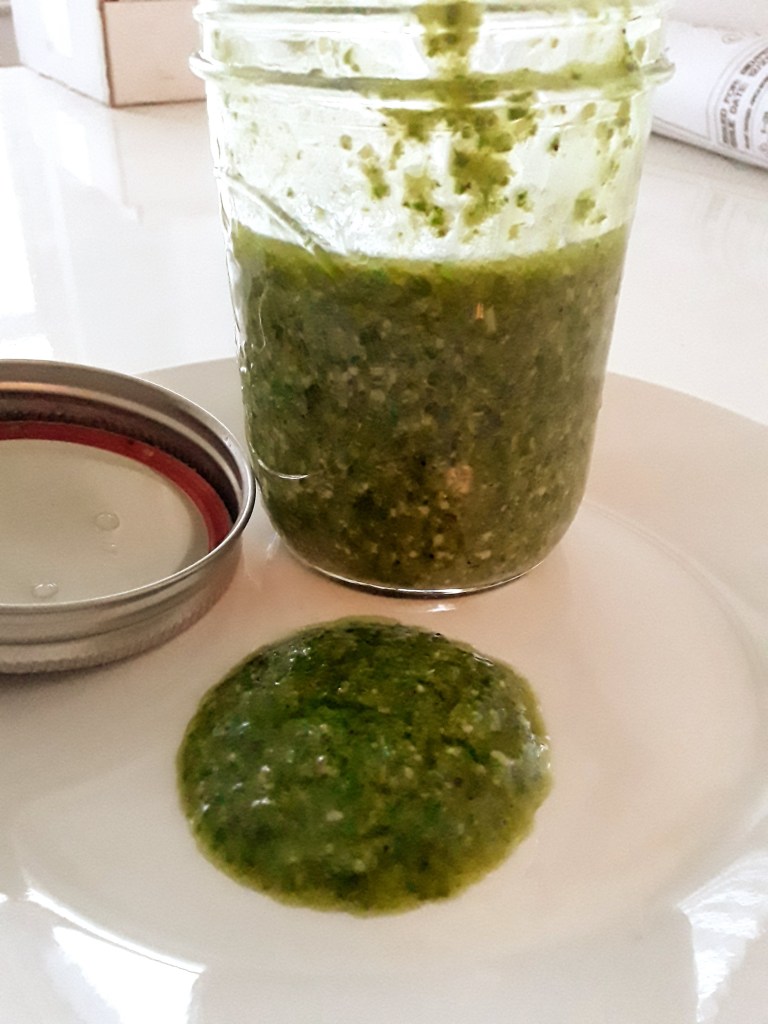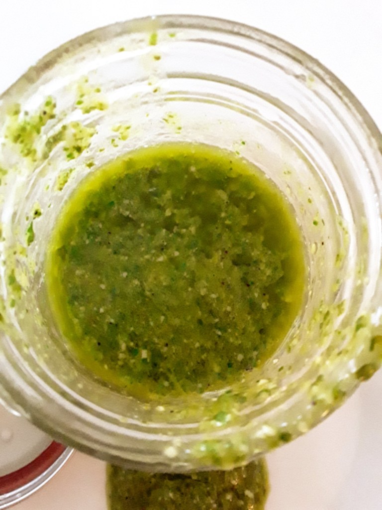 Homemade pesto! All you need is herbs, olive oil, lemon juice, and parmesan cheese (optional)!