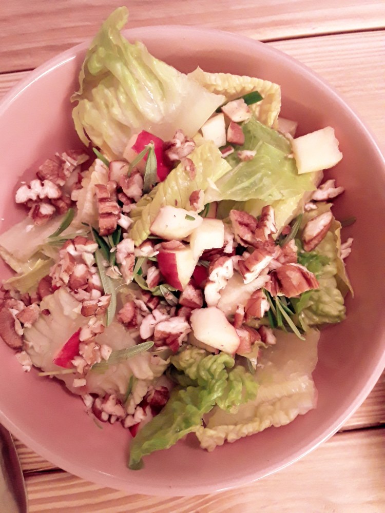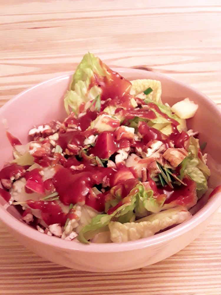 The salad: apple, pecan, rosemary salad with spicy bbq dressing