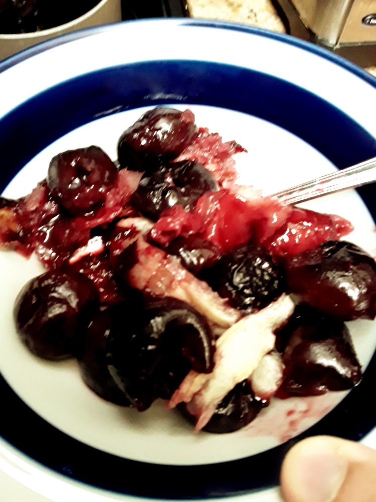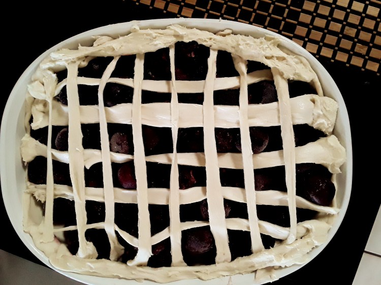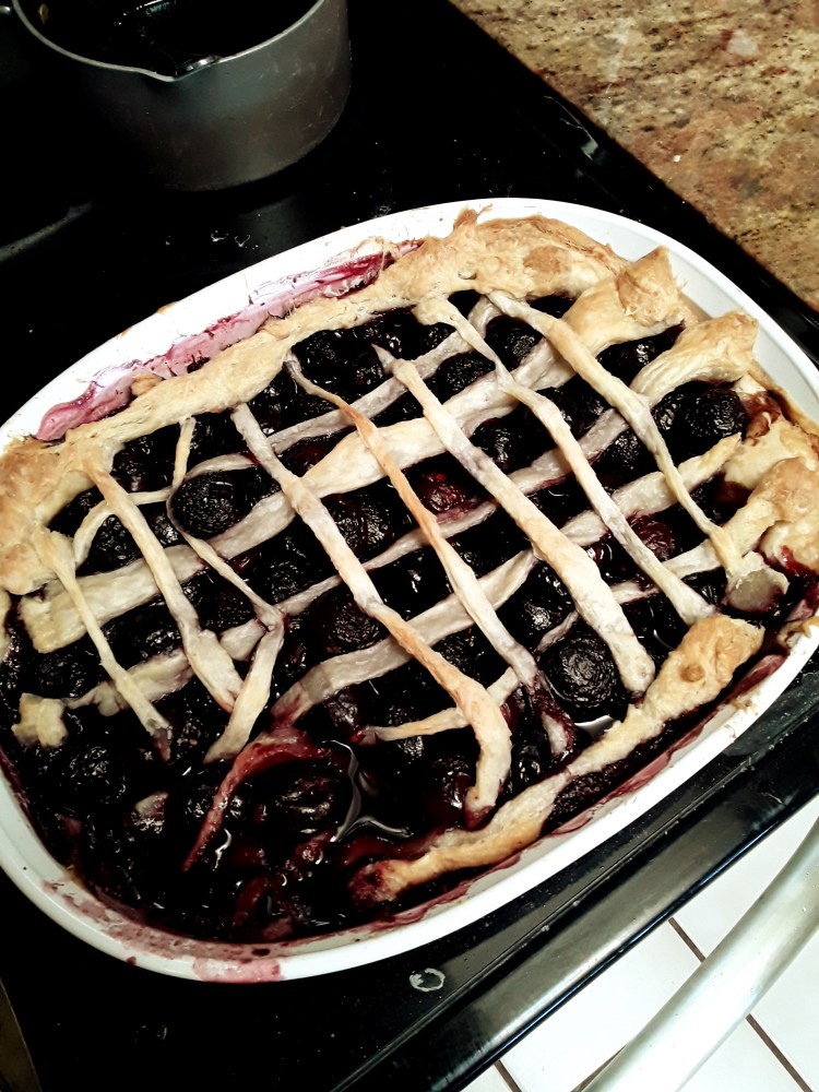 You’ve probably heard of sheet cake, but this is sheet “pie”. Black cherries baked into a warm pie! I love pies and I don’t eat cake very often so instead of sheet cake I made sheet “pie”!