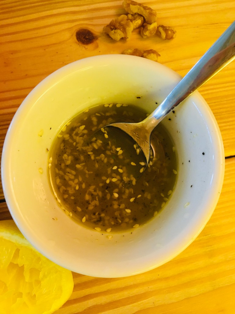 One of my favorite dressings! Lemon, olive oil and sesame seeds go together so well! You usually don’t see lemon going together with sesame but in this recipe it will show u just how good lemon and sesame together are!!!