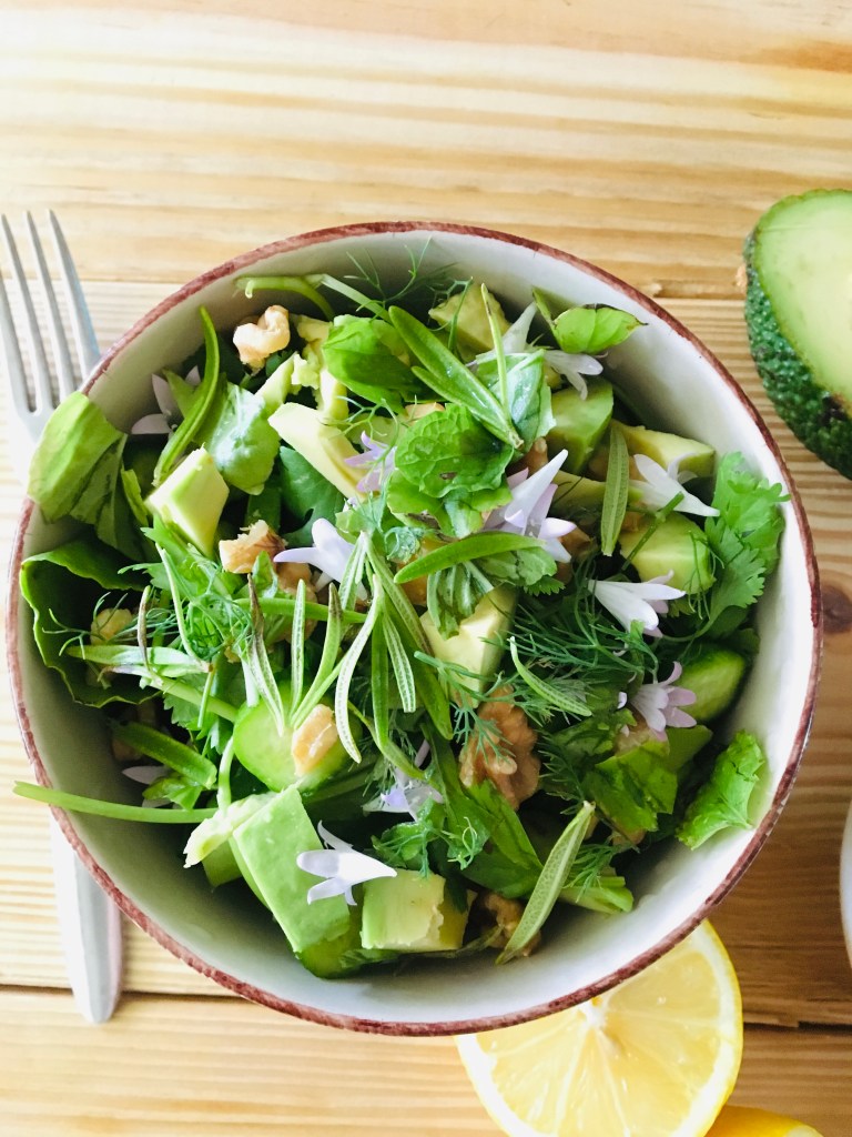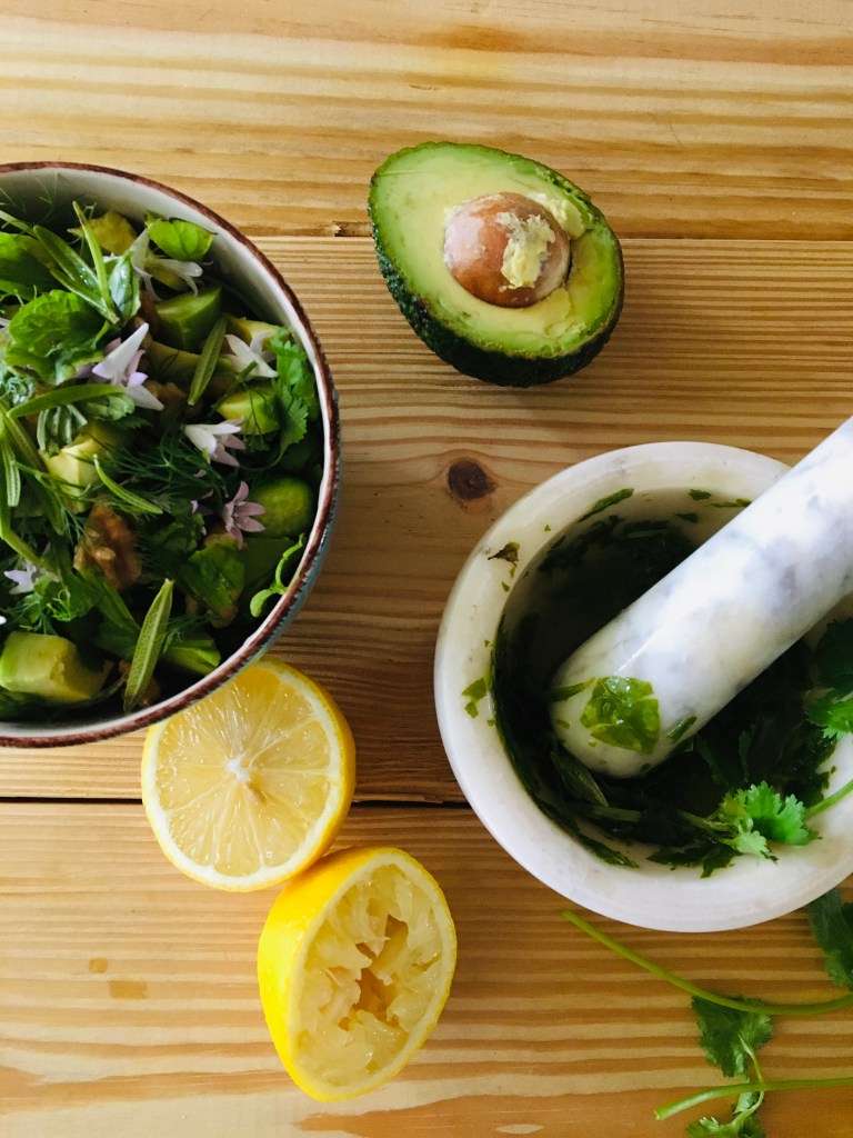 in this recipe even the dressing is green! That is because of the fresh aromatic herbs.