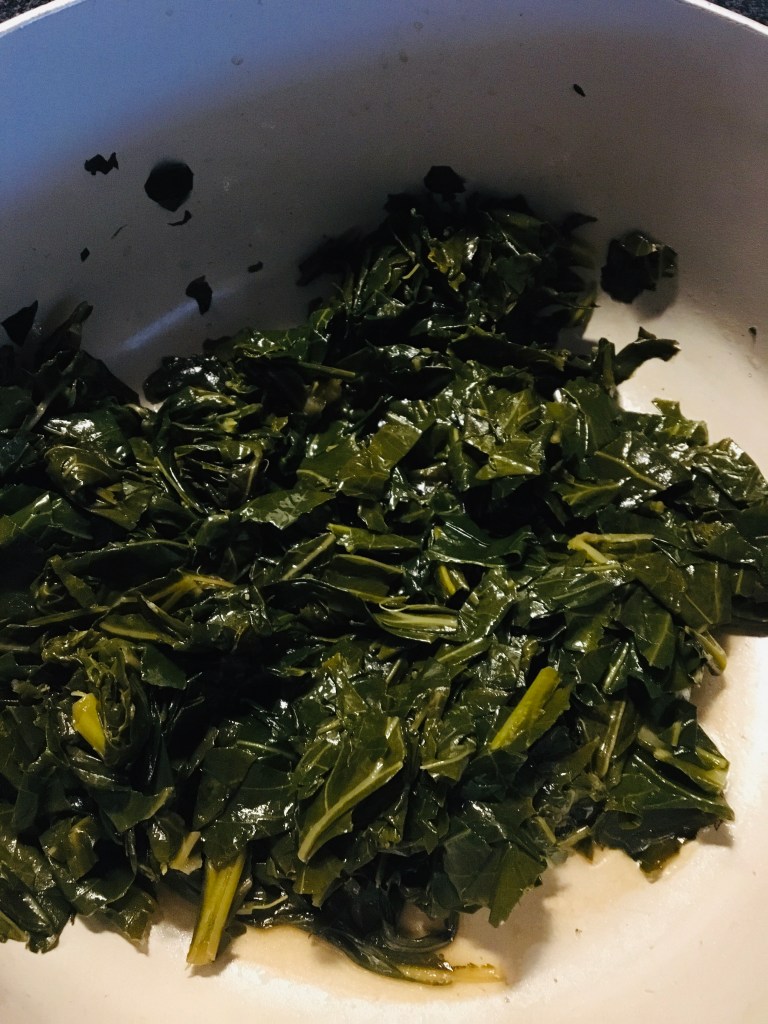 Collards. You can find collards at your local grocery. I find mine all year round.