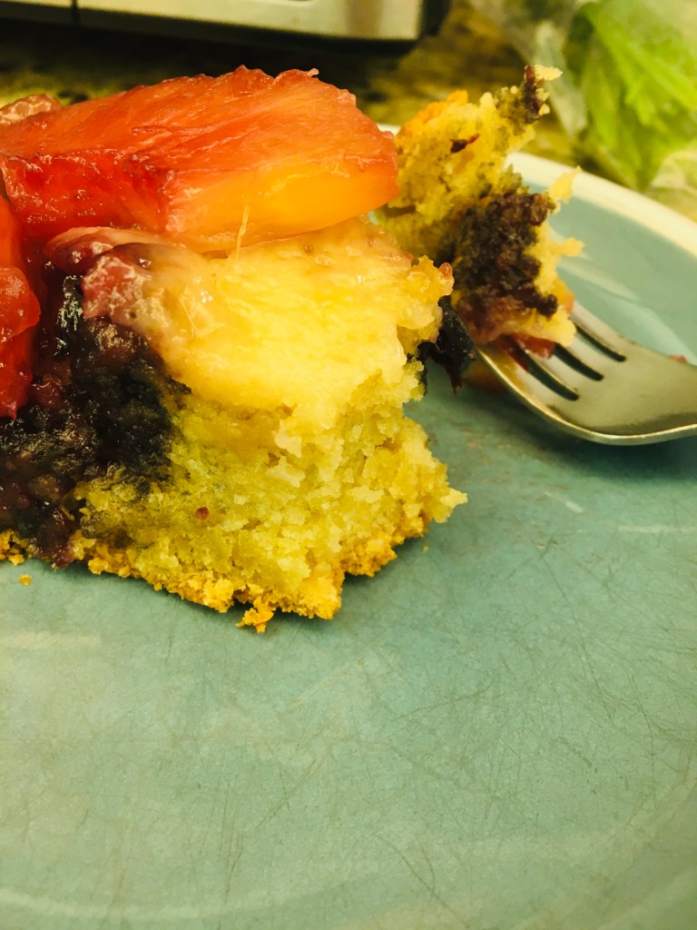 I’ve done it! I made a delicious pineapple upside-down cake that is both delicious and vegan! Yes I know it is a bit messy (ok maybe more then a bit) but it’s not how it looks it’s about how it tastes!! It holds up well and I don’t think it made it through one day (it was eaten to quickly😊😆).