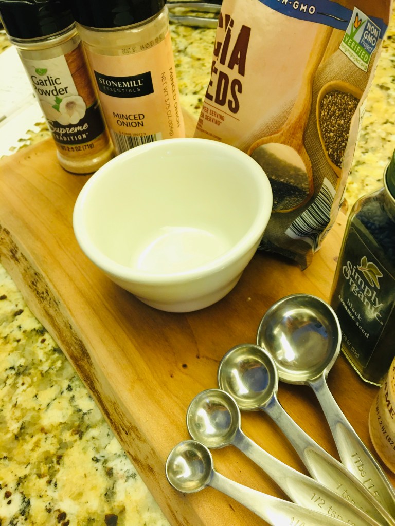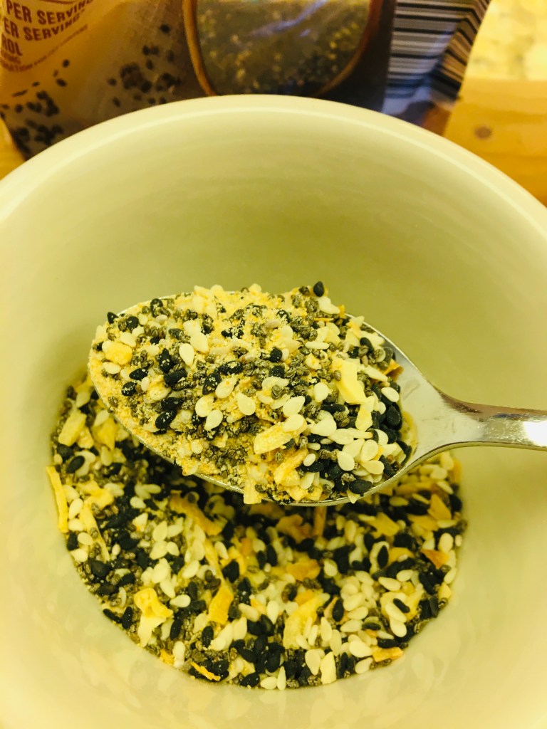 This is my version of everything bagels seasoning with chia seeds instead of poppy seeds and it’s super easy to make!