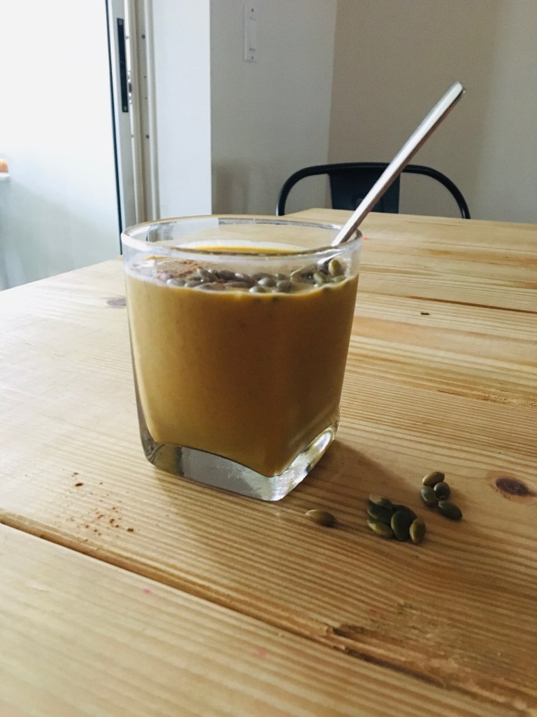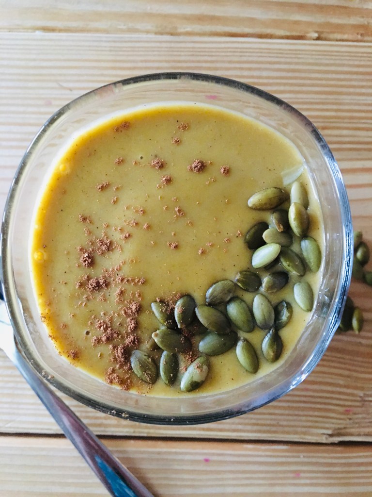 All the pumpkin flavors blended into a creamy smoothie that you’ll devour in a matter of minutes! Yes this smoothie is vegan and dairy free and….gluten free.