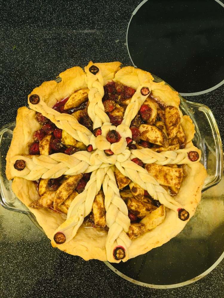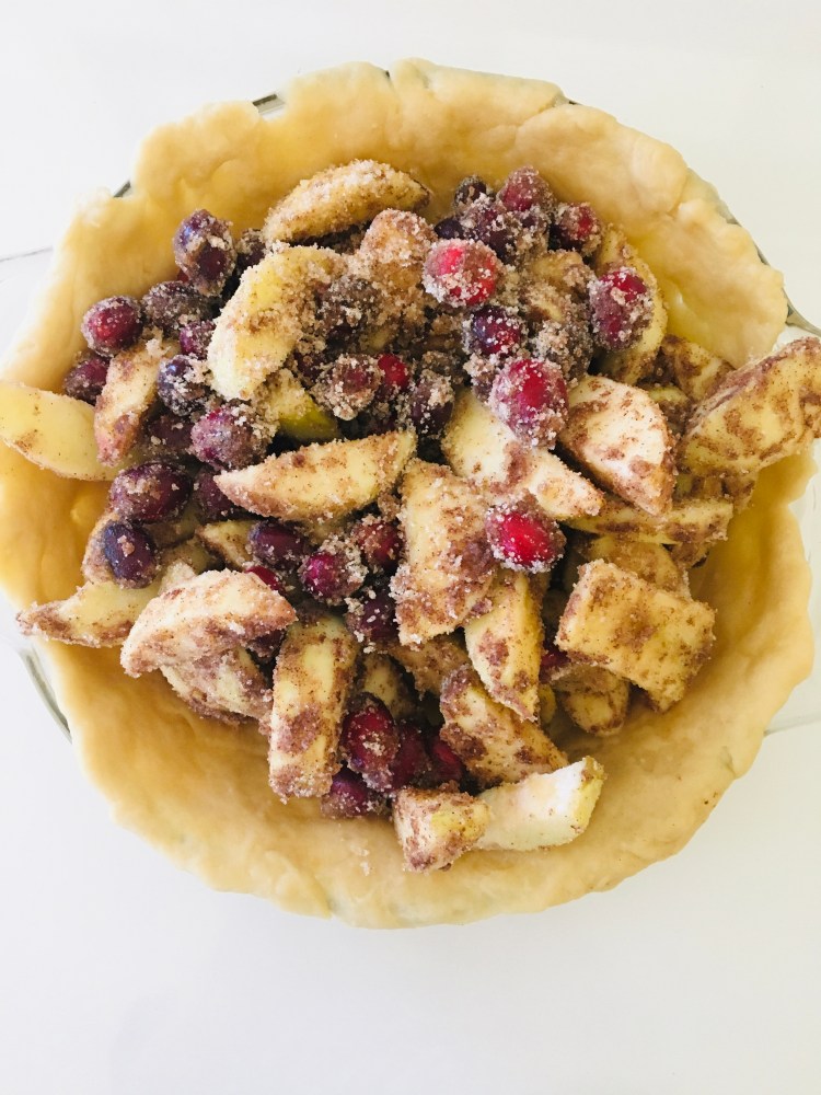 I had some fresh cranberries meant for thanksgiving cranberry sauce but I forgot to freeze it and it was going to go bad if I didn’t use it. I immediately went online and started browsing recipe ideas using cranberries. Well I saw a pie and I had apples so…. you get the idea?😂