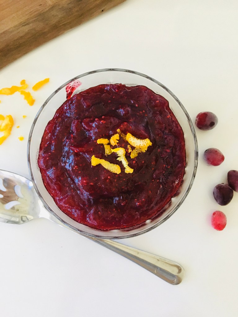 this is super simple and requires only a few ingredients such as…cranberries, sugar, water, and orange zest.