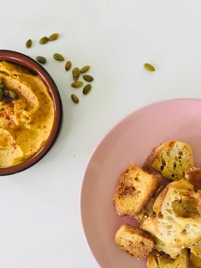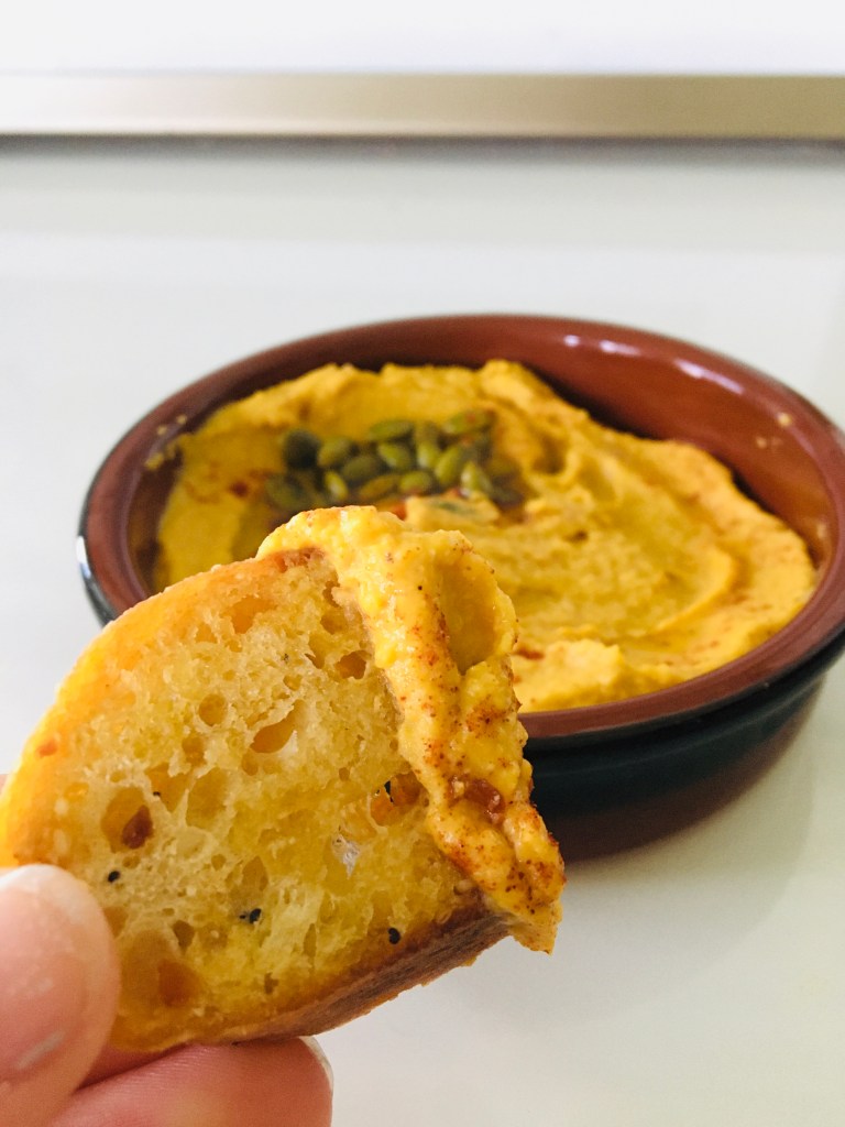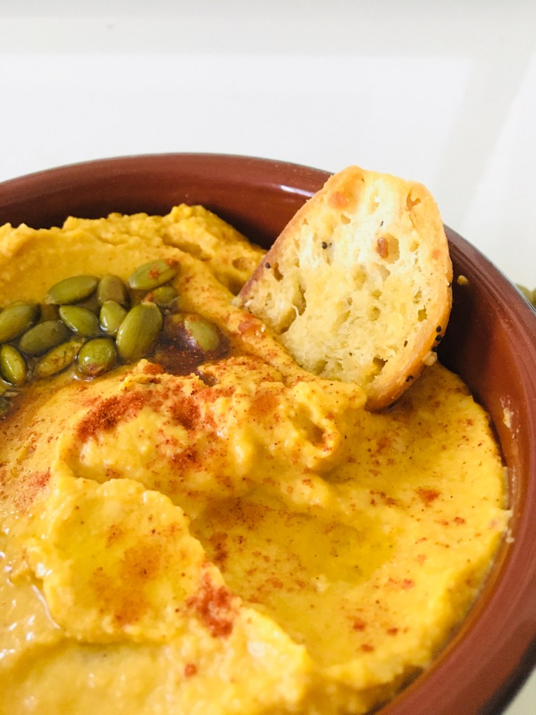 I served my bagel chips with my homemade Pumpkin hummus! You can serve it with any hummus or dip you please! You could even try dipping them in cream cheese (preferably vegan for me). I haven’t tried using blueberry bagels yet but I’m sure you could make a sweet dip for those.