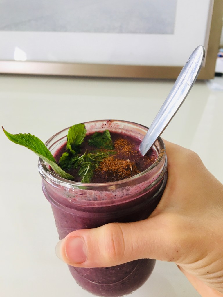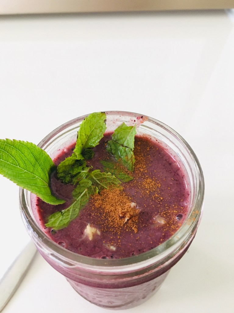 blend until smooth. Top with the pineapple sage, mint, and extra grated ginger and a pinch of cinnamon. Enjoy!