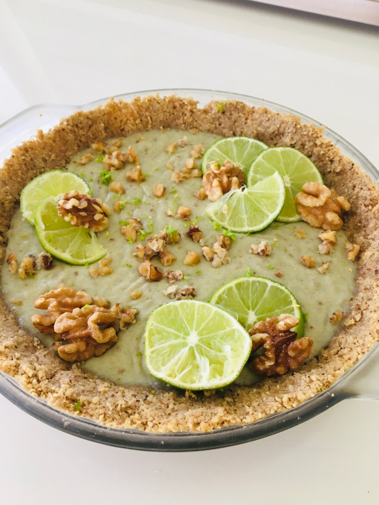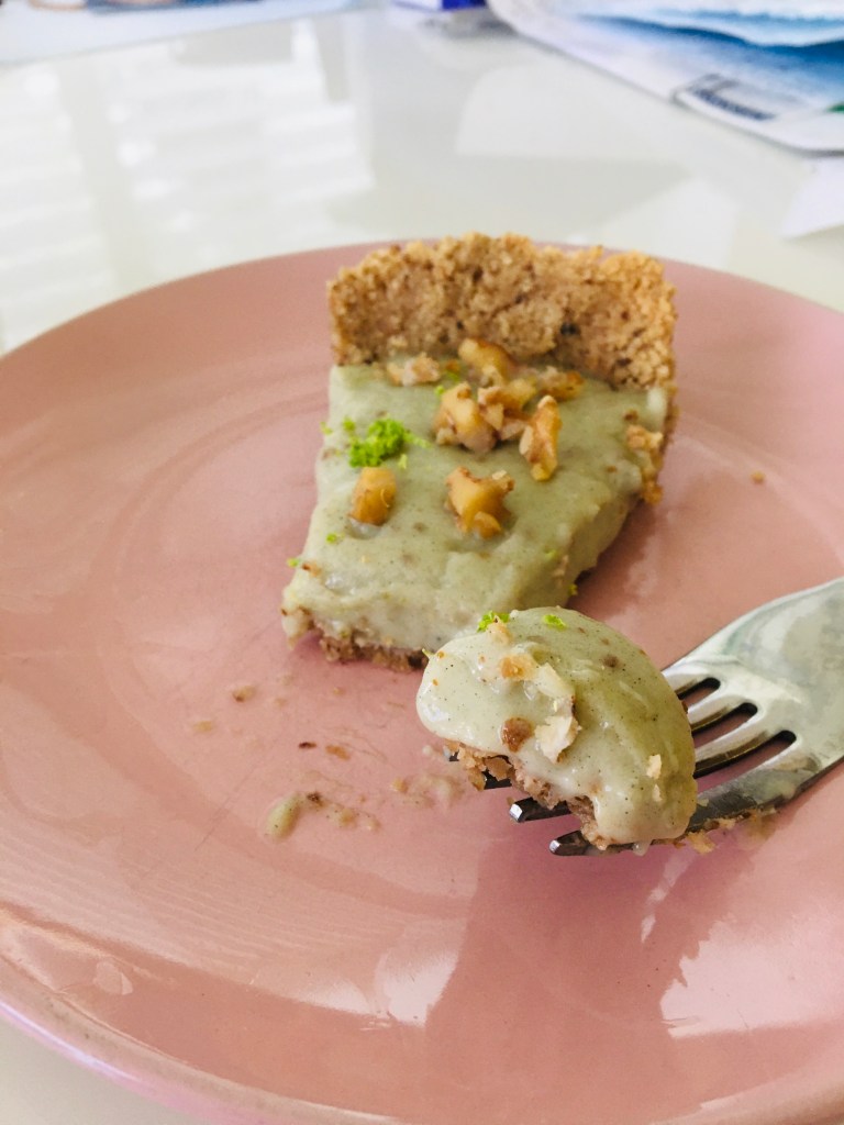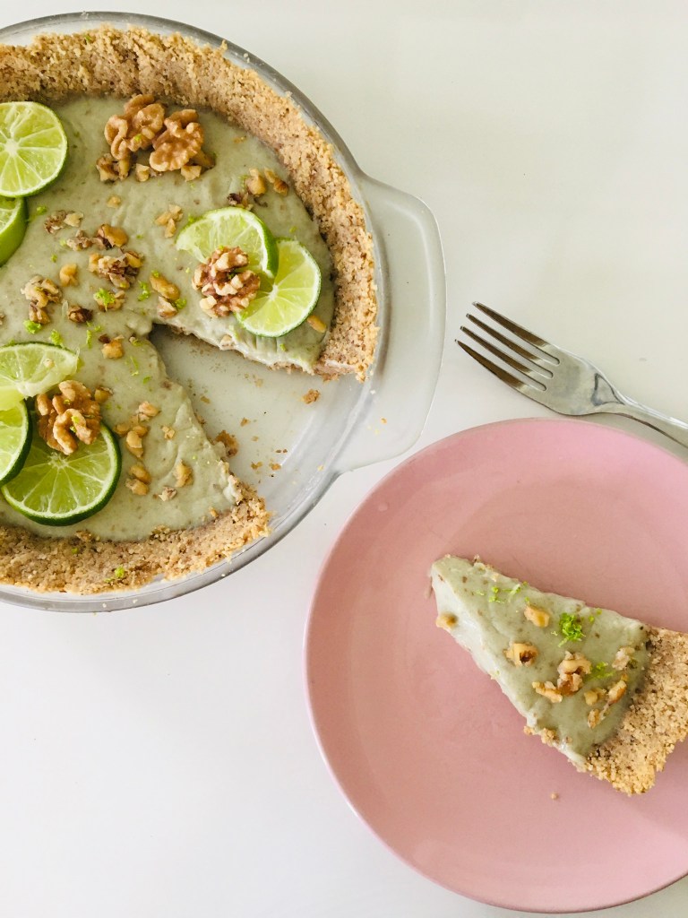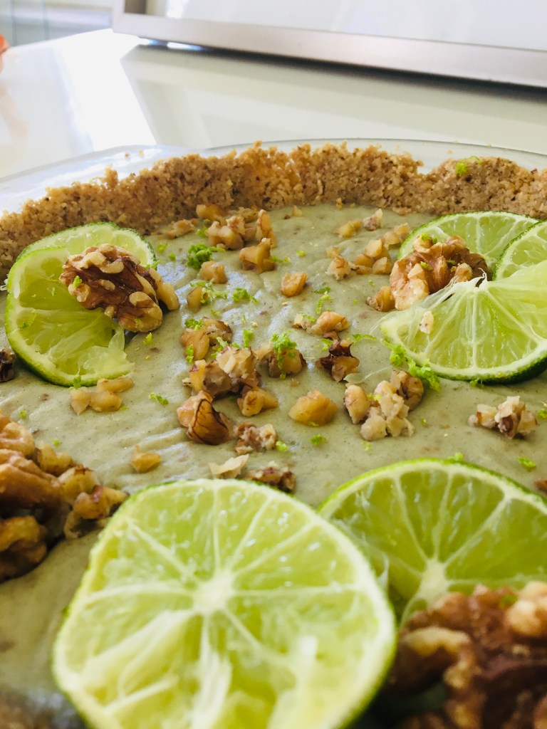 This is a take on the pie that everyone loves: key lime pie!! I added walnuts to mine and used a walnut crust since it’s quite hard to find vegan graham crackers. 💚