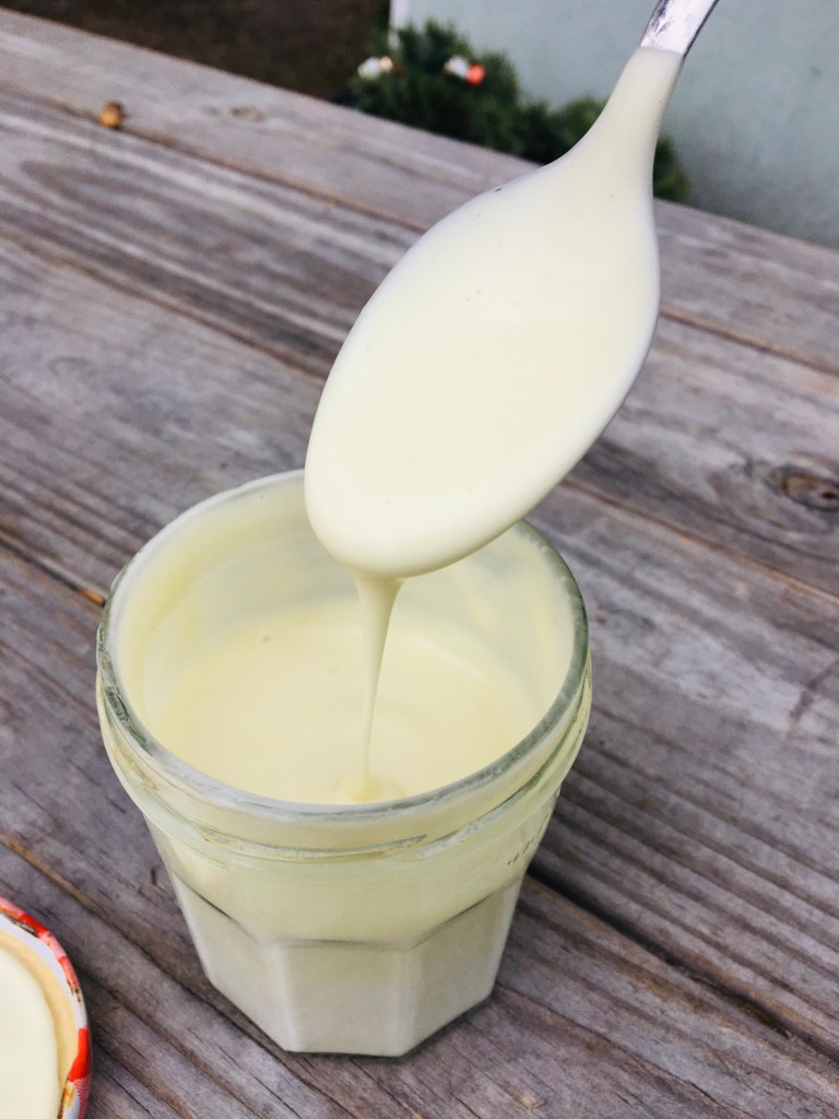 You know the water in a can of chickpeas? Well it’s called aquafaba and when it’s blended with oil it becomes creamy like when you whip eggs! You have to use room temperature aquafaba because I’ve tried it with the refrigerated liquid and it doesn’t work as well.