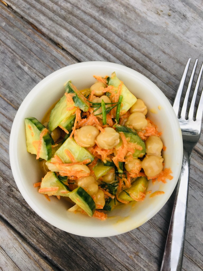 This is like a chicken salad, but without the chicken! I used protein packed chickpeas instead!