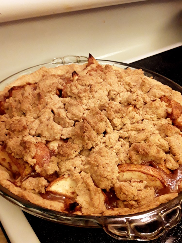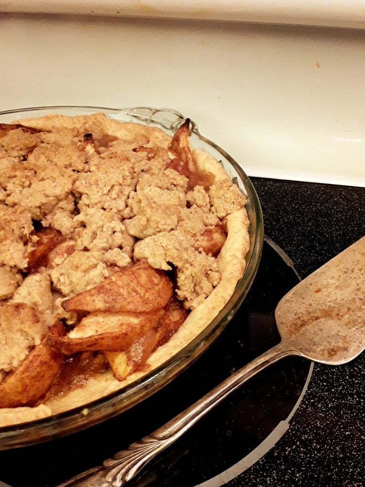 Mix in a bowl until well combined. Sprinkle evenly over the pie.